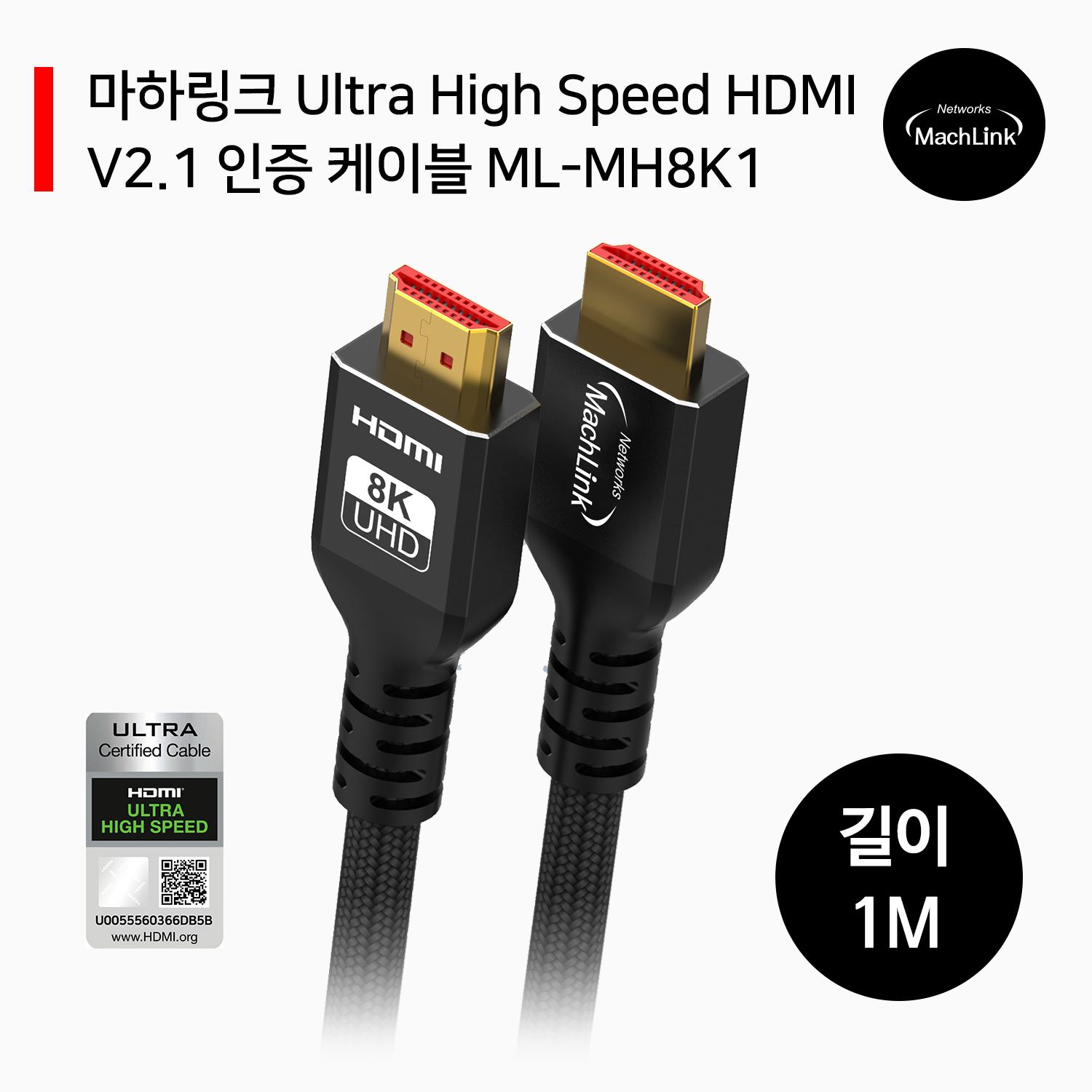 마하링크 Ultra High Speed HDMI V2.1 인증 케이블 1M ML-MH8K1